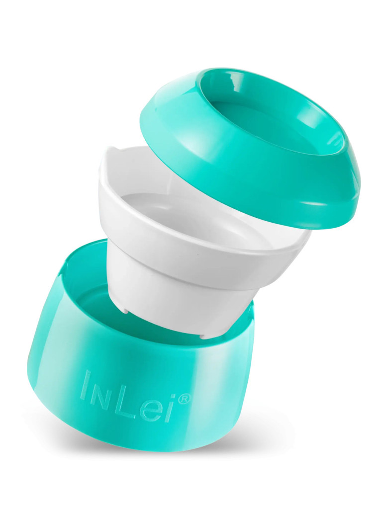 A szett tartalmaz egy praktikus, ecsettartó bemélyedéssel ellátott tálkát, mely víztartóként és ecsettisztítóként egyaránt használható, valamint egy fedéllel kombinált szűrőt, mely megkönnyíti az eszközök, fésűk és szilikonformákaz InLei FPLUS fertőtlenítő folyadékkal való sterilizálását. A tálka alján lévő bordázat kiváló az ecsetek szálainak alapos tisztításához.